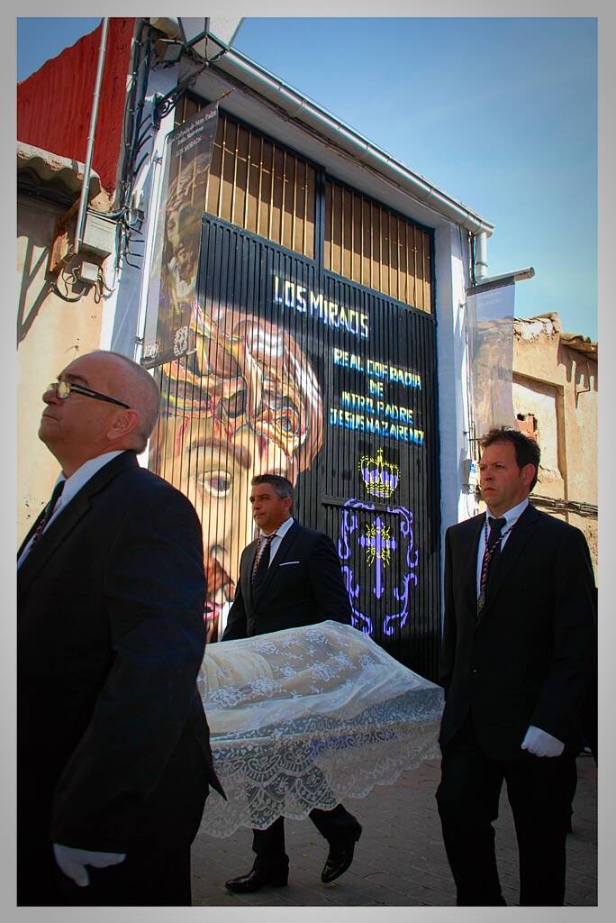 Al concluir la procesión del Santo Entierro, ante los ojos de la Santísima Virgen de la Soledad y del discípulo amado, además de las decenas de fieles que en la Plaza de España se congregan; la imagen de Cristo Yacente es introducida entre tiniebla, cera e incienso en el templo parroquial de Ntra. Sra. del Rosario. En el sitio preparado le aguarda María, con la espada atravesando su pecho, rota de dolor. Contemplar la escena es sobrecogedor y nos invita a la oración, por ello el templo permanece abierto hasta la madrugada.
