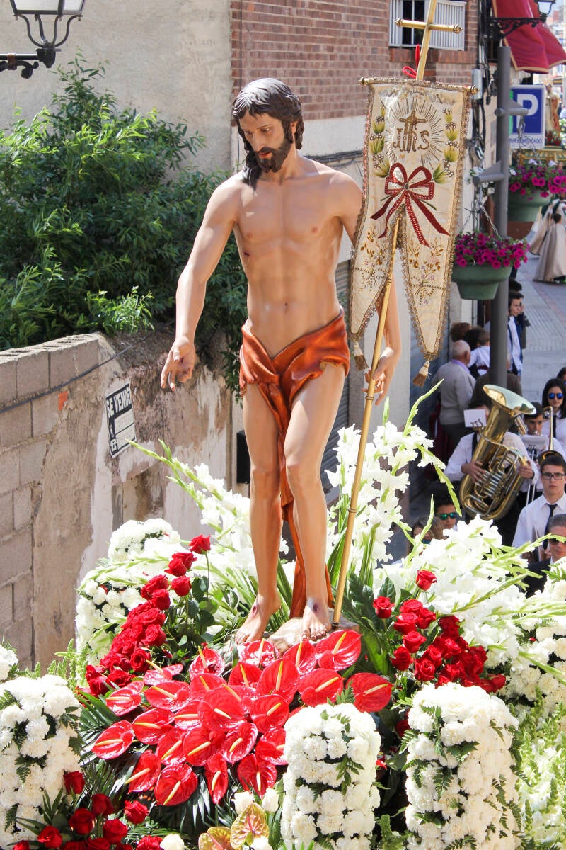 Da comienzo a las 9.00 horas, Procesion del Resucitado, trata de la más joven de las cuatro procesiones, si bien hunde sus raíces en el “Encuentro” de la Plaza Vieja, donde ya en 1814 se daban cita, acompañadas de numeroso público, las imágenes del Cristo Resucitado y de la Virgen del Rosario. Con el estallido de la Guerra Civil y destruido dicho Resucitado, el Encuentro se perdió, recuperándose a partir de 1968 para dar origen además a una nueva procesión que fue incorporando las imágenes propias de este día. El Encuentro sigue siendo el momento más intenso y emotivo de esta jornada. Tras la salida de la iglesia parroquial, las imágenes van llegando a la Plaza Vieja a través de distintas calles, produciéndose una explosión de júbilo cuando lo hacen, al mismo tiempo, el Cristo Resucitado y la Virgen Gloriosa. Tras los saludos y los bailes de tronos en medio de la música festiva, la procesión se reanuda para continuar su recorrido, que se amplía respecto al de las otras abarcando diversas calles del Barrio Nuevo.